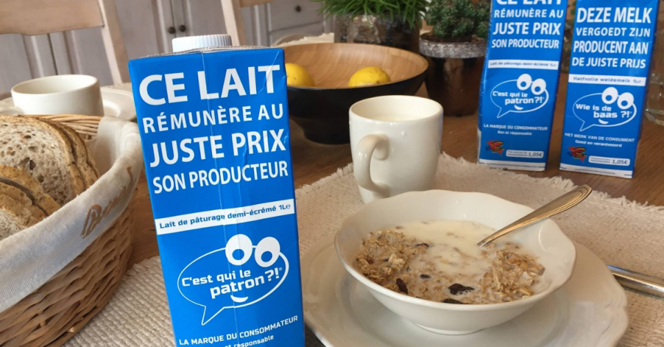 Depuis mars 2018, plusieurs supermarchés belges ont introduit un nouveau lait sur leurs étals. Sa particularité? C’est les consommateurs eux-mêmes qui ont décidé du prix en fonction des caractéristiques du produit. Concrètement, l’initiative solidaire et collective “C’est qui le patron” a demandé via un questionnaire à de nombreux consommateurs les caractéristiques qu’ils exigeaient pour un produit (ici le lait) et s’ils étaient prêts à payer le prix pour celles-ci. Le but de l’initiative est bien de créer un produit pour lequel, le client est prêt à payer mais qui en même temps respecte les producteurs. Pour le tout premier produit belge “C’est qui le patron“, soit le lait, le cahier des charges a été défini comme ceci par les consommateurs: