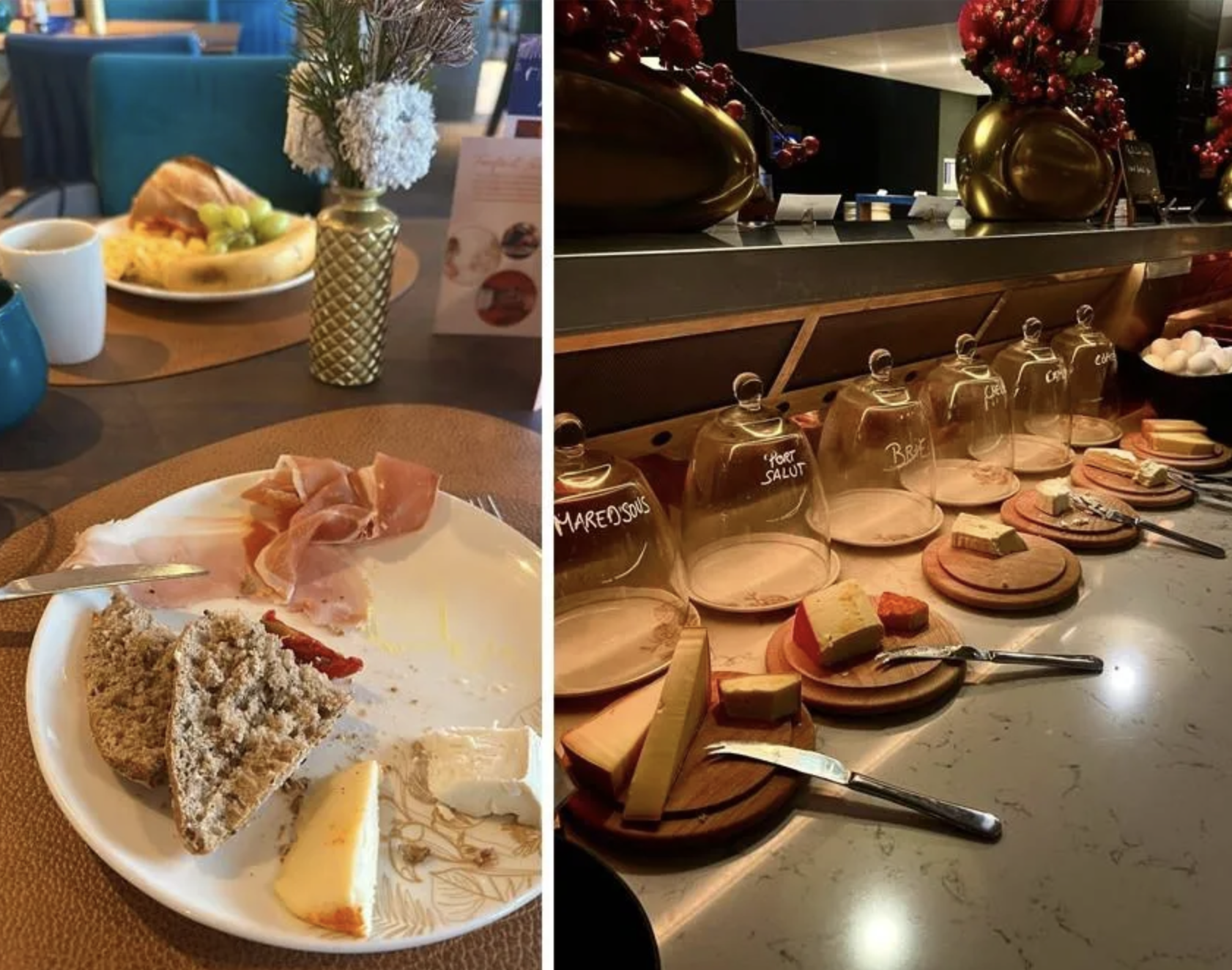 Au réveil, des flocons de neige tombaient dehors, offrant une vue magnifique sur la Meuse et le Palais des Congrès de Liège. Même si admirer Liège sous un manteau de neige était magique, on avait surtout hâte de passer à table. Une chose est sûre : le buffet du petit-déjeuner ne nous a absolument pas déçues. Difficile de savoir par quoi commencer. Le miel, présenté de façon originale, attirait immédiatement l’œil. Entre les plats chauds et froids et l’impressionnante sélection de fromages pour les amateurs et amatrices, l’offre est particulièrement généreuse.