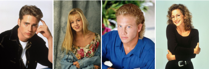 Cette série américaine a bercé le quotidien des adolescents des années 90. On suivait les histoires de ce groupe d’amis du prestigieux quartier de Beverly Hills à Los Angeles. Avec leurs rendez-vous inoubliables au Peach Pit autour d’un milkshake ou d’un café. Entre drames familiaux, amitiés fracturées et cœurs brisés, la série exploitait tous les codes d’une bonne série d’ados et reste encore aujourd’hui, un symbole des années 90. La bande-son, le stylisme, le décor, tout est culte. Mais ce qu’on retiendra surtout, c’est son casting. Jason Priestley et Shannen Doherty qui interprétaient respectivement Brandon et Brenda Walsh, Kelly Taylor qui tenait à merveille le rôle de Kelly Taylor, Dylan McKay le beau gosse joué par Luke Perry et enfin l’attachant Steve Sanders, le fêtard à qui se met toujours dans des situations absurdes interprété par Ian Ziering.