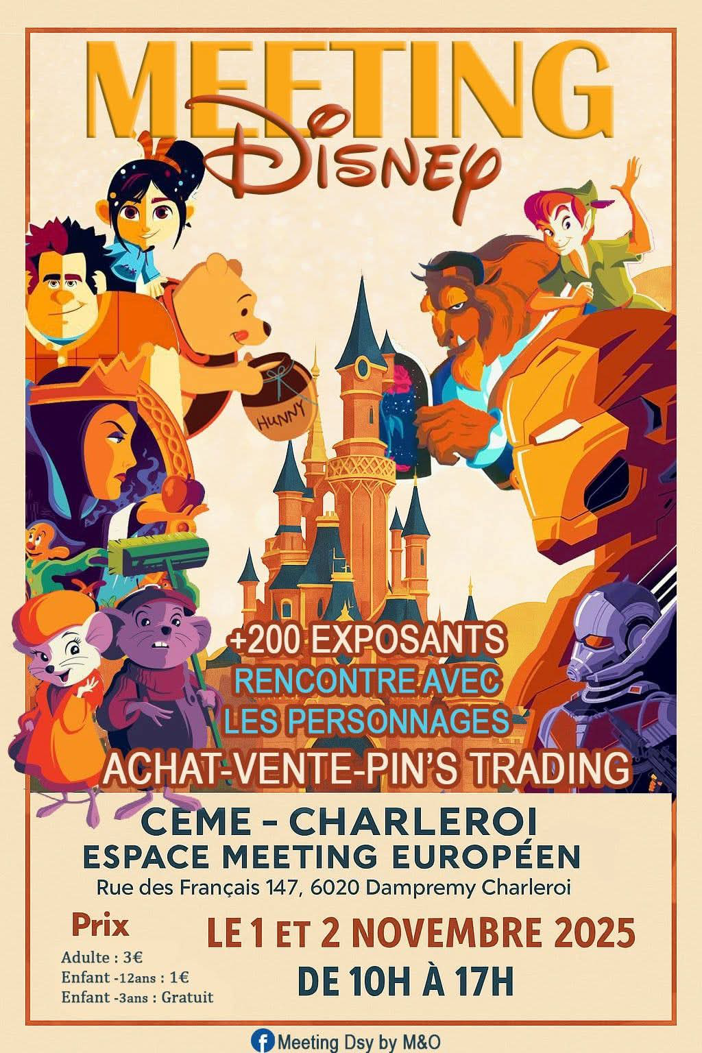 Depuis 2017, le “Meeting Disney” est le rendez-vous incontournable des fans de Disney. Cet événement consacré tant aux familles qu’aux collectionneurs vous plongera dans vos souvenirs d’enfance et apportera un peu de magie à votre week-end. Pour cette nouvelle édition et pour la première fois, l’événement s’agrandit et déménage à Charleroi au CEME – Charleroi Espace Meeting Européen à Dampremy les 1 er et 2 novembre 2025.