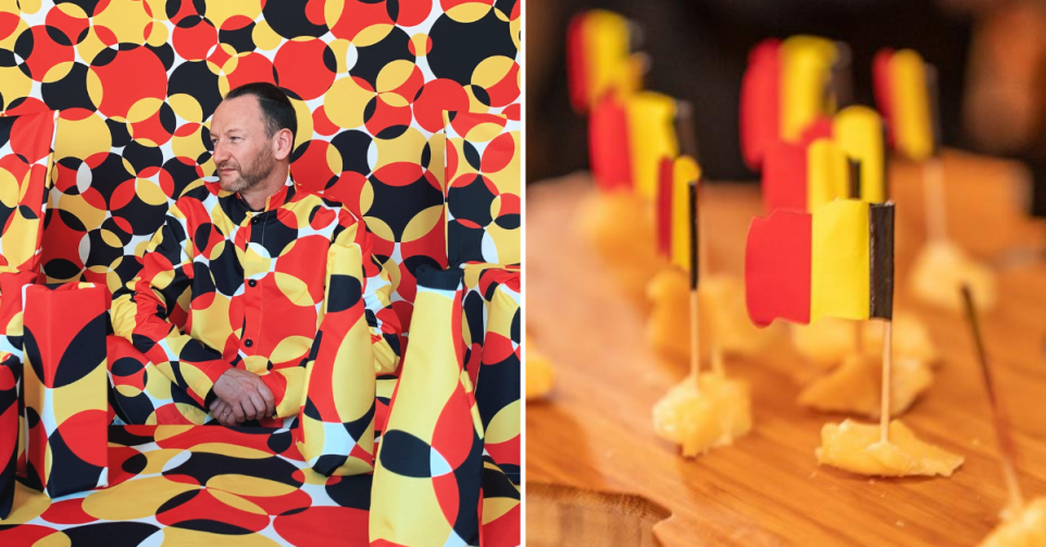 Pour une plongée dans l’univers surréaliste de Charles Kaisin, ne manquez surtout pas le café éphémère installé au coeur de Maasmechelen Village. Dévoilé à la presse lors d’un repas surréaliste dont on se souviendra longtemps, le lieu du pop-up café est un hommage à notre tendre et chère Belgique. Du sol au plafond, tout est noir jaune rouge. L’artiste belge a en effet créé pour l’occasion un motif exclusif comprenant une série de sphères qui se superposent. Imprimé sur tous les murs, le motif s’inspire de la forme d’un ballon de football, il est un clin d’oeil à nos diables rouges mais aussi à l’Atomium, monument le plus célèbre de Belgique.