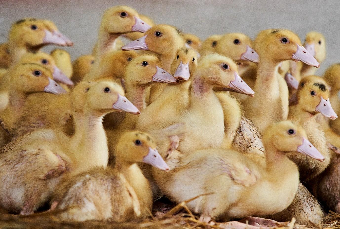 Valérie : « Nous recevons nos canetons le lendemain de leur naissance, on les garde au chaud jusqu’à ce qu’ils grandissent. Pendant 12 semaines, ils se promènent à l’air libre, c’est essentiel pour leur développement. Ensuite, nous les engraissons avec 2 repas par jour pendant maximum 2 semaines. L’engraissement est la partie de mon métier à laquelle je prête le plus d’attention. Chaque jour, je surveille de près le comportement de mes canards. Je ne ferais jamais engraisser un animal qui n’a pas encore bien digéré sa nourriture. Un animal qui souffre et qui se sent inconfortable, ne grossira pas et donc ne fournira pas un foie gras de bonne qualité. Les canards mulards ont une capacité naturelle à engraisser leur foie. Il faut savoir qu’un canard n’a pas de glotte, lorsqu’on utilise l’entonnoir pour y glisser sa nourriture, cela va directement dans son jabot. Nous restons toujours très attentifs à leur comportement. Si un canard n’a pas complètement digéré son repas précédent, on ne le nourrit pas. J’attends que l’animal stocke son repas naturellement. Cette méthode d’engraissement préserve la tradition séculaire et c’est essentiel pour moi ».