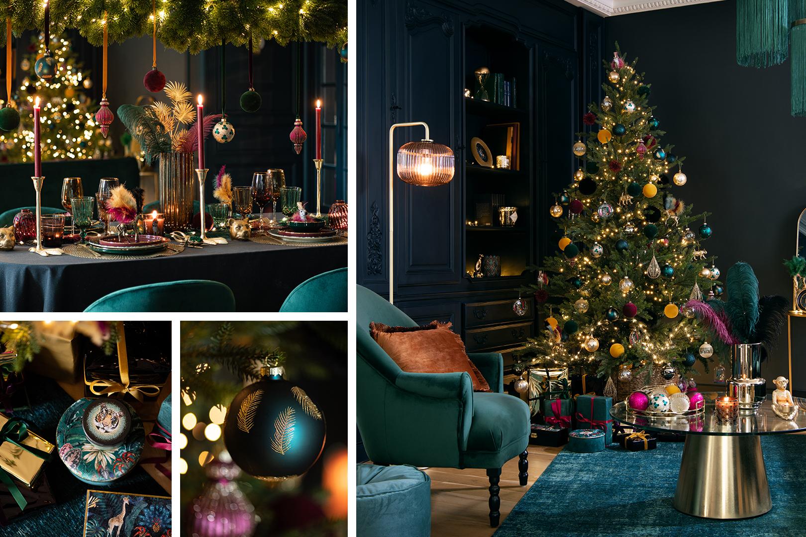 Go big ánd go home : telle est votre devise de Noël. Pour vous, la fête n’est jamais trop étincelante. Vos couleurs de Noël ? Le fuchsia vif, le bleu électrique, le jaune moutarde et le vert émeraude. Et pourquoi pas avec une touche de bleu nuit ? Vous mélangez et associez facilement les imprimés animaliers avec des guirlandes vertes et des touches dorées. Avec vous, le velours (clin d’œil aux seventies) fait son grand retour comme nappe ou plaid. Et que diriez-vous de ces coussins aux couleurs vives qui semblent parfaitement assortis à vos boules de Noël ? Un ensemble un peu psychédélique ? Peut-être. Totalement X-massy pour vous ? Absolument !