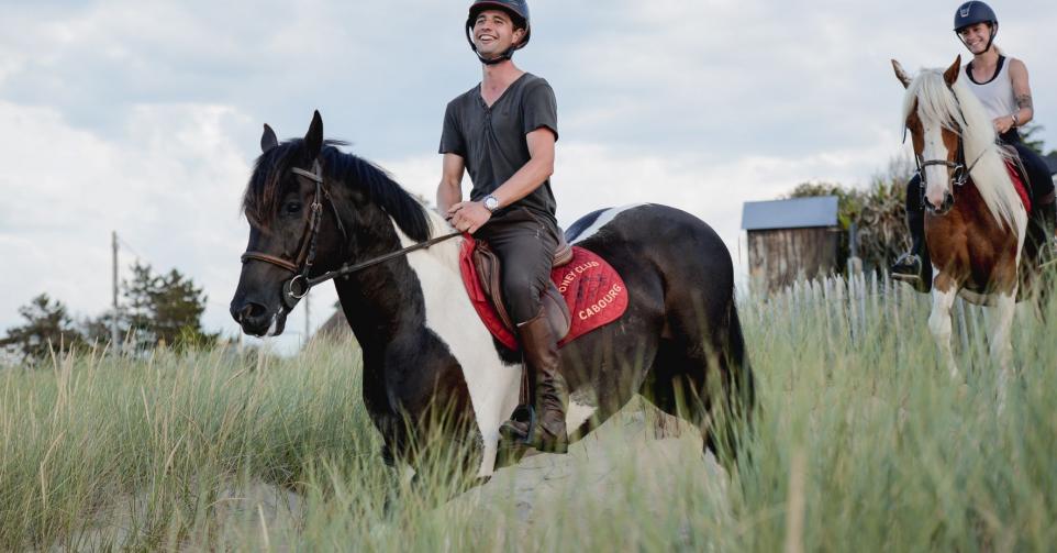 Quoi de plus romantique qu’une balade à cheval à deux au soleil couchant sur la plage de Carbourg, une des plus belles plages de sable fin de la région ? Pas besoin pour autant d’être un cavalier accompli. Au Poney club Le Home, Ophélie, monitrice d’équitation et accompagnatrice, nous met le pied à l’étrier et rappelle les règles de base avant de nous faire prendre la direction de la plage de sable blanc, toute proche. Le spectacle grandiose de la mer, le cri des mouettes, la complicité avec les chevaux et la sensation d’être projeté hors du temps font de cette expérience un moment magique à partager à deux. Cerise sur le gâteau, une pause champagne sur une terrasse privatisée.