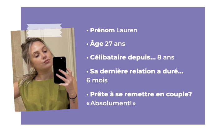 Chez Flair, on est convaincues que le célibat rime avec bonheur, richesse et expériences! Dans Vie de célib’, on vous emmène à la rencontre d’un·e célibataire fier·ère de l’être. Cette semaine, on a rencontré Lauren, 27 ans, célibataire depuis 8 ans.