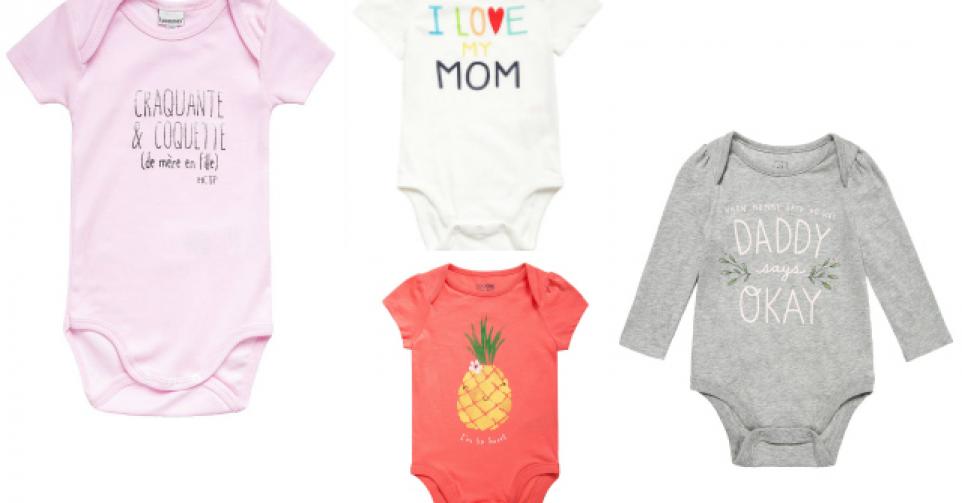 Parce que votre petit bout aussi a le droit d'avoir la classe, on a mis votre dressing quelques instants entre paranthèses pour dénicher quelques pièces pour bébé. Et on a trouvé des petits bodys vraiment trop trop choupis.