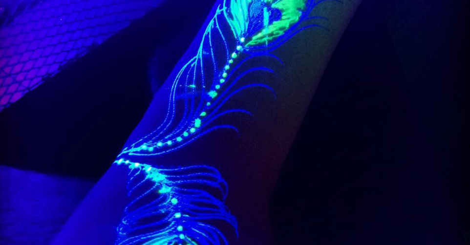 Comme souvenir d'un voyage au Maroc ou durant le mariage d'une amie, nous avons toutes un jour essayé ce joli tatouage éphémère. À côté de ce tatouage traditionnel, nous avons découvert le henné phosphorescent. Sa pâte colorée offre un joli dessin à la lumière du jour. Une fois sous la lumière noire, le tatouage apparaît comme par magie sous un tout autre jour.