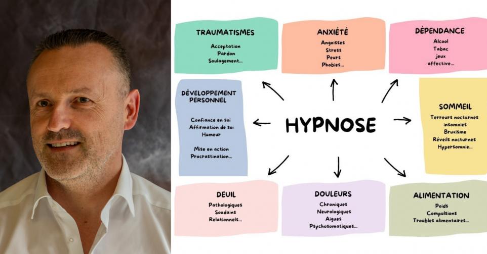 Concernant l’hypnose, cela fait une dizaine d’années qu’il la pratique à titre d’activité complémentaire, même s’il envisage d’en faire son activité principale.