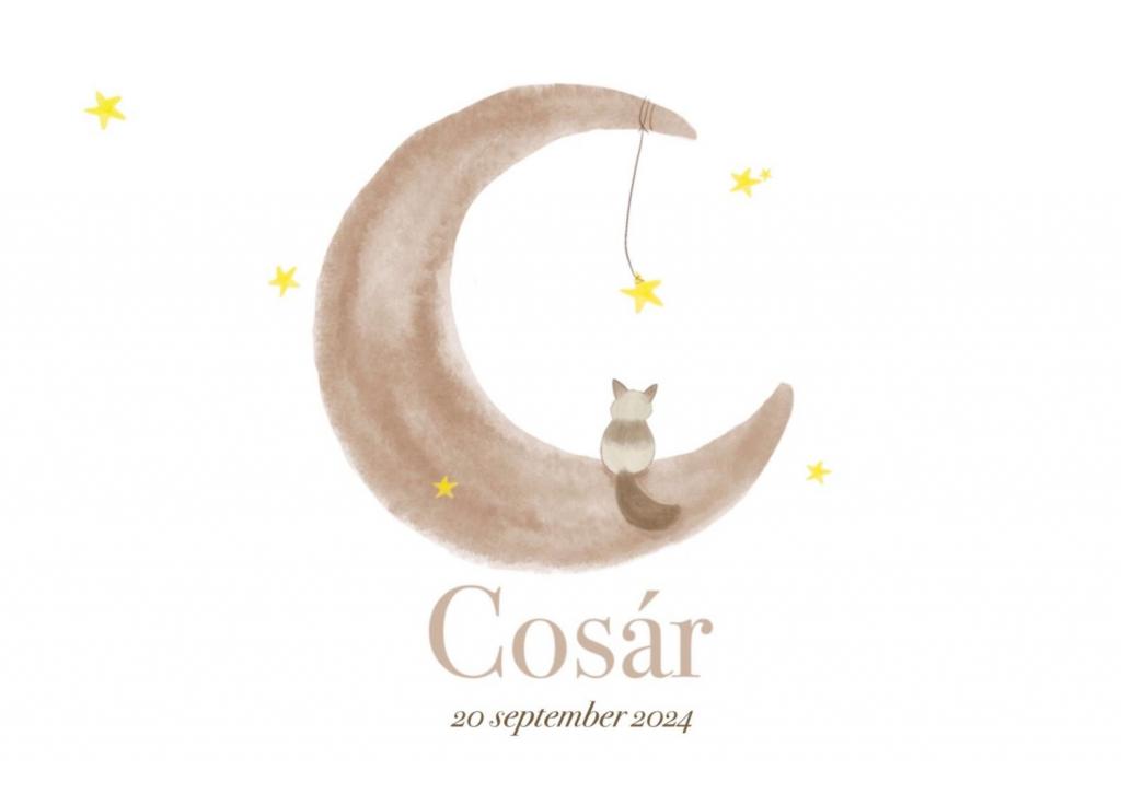 La recherche d’un prénom n’a pas été une mince affaire, puisque mon partenaire, en tant que professeur de gymnastique, associe beaucoup de prénoms à des enfants qu’il a déjà vus passer. Finalement, nous avons choisi le prénom Cosár après que Delano l’ait vu sur Instagram. Nous avons tous les 2 eu un coup de cœur immédiat. Avec l’accent sur le A, on le prononce ‘Kozar’.
