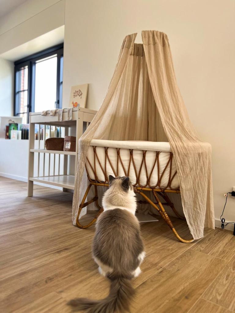 « Notre chat et notre petit garçon sont déjà les meilleurs amis. D’habitude, Moose ne se laisse caresser que par Delano et moi, mais il est très gentil et attentionné avec Cosár. »