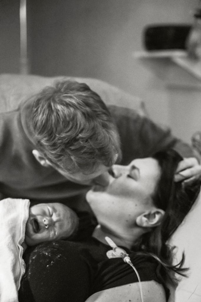 « Cette photo a été prise une demi-heure après la naissance de Hélder: ma ‘première rencontre’ avec lui, après son contrôle médical et après que la gynécologue se soit occupée de moi. »