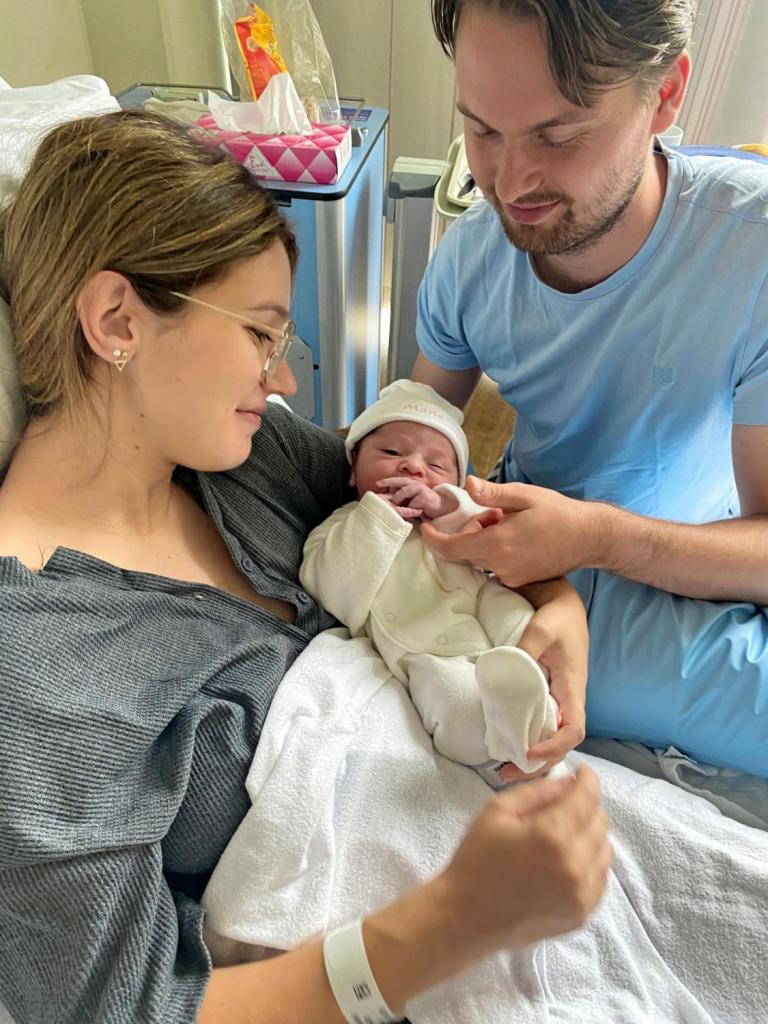 Julie, 26 ans, a eu des difficultés à pousser lors de son accouchement. Son compagnon Sean, 30 ans, et elle sont les heureux parents de Marie.