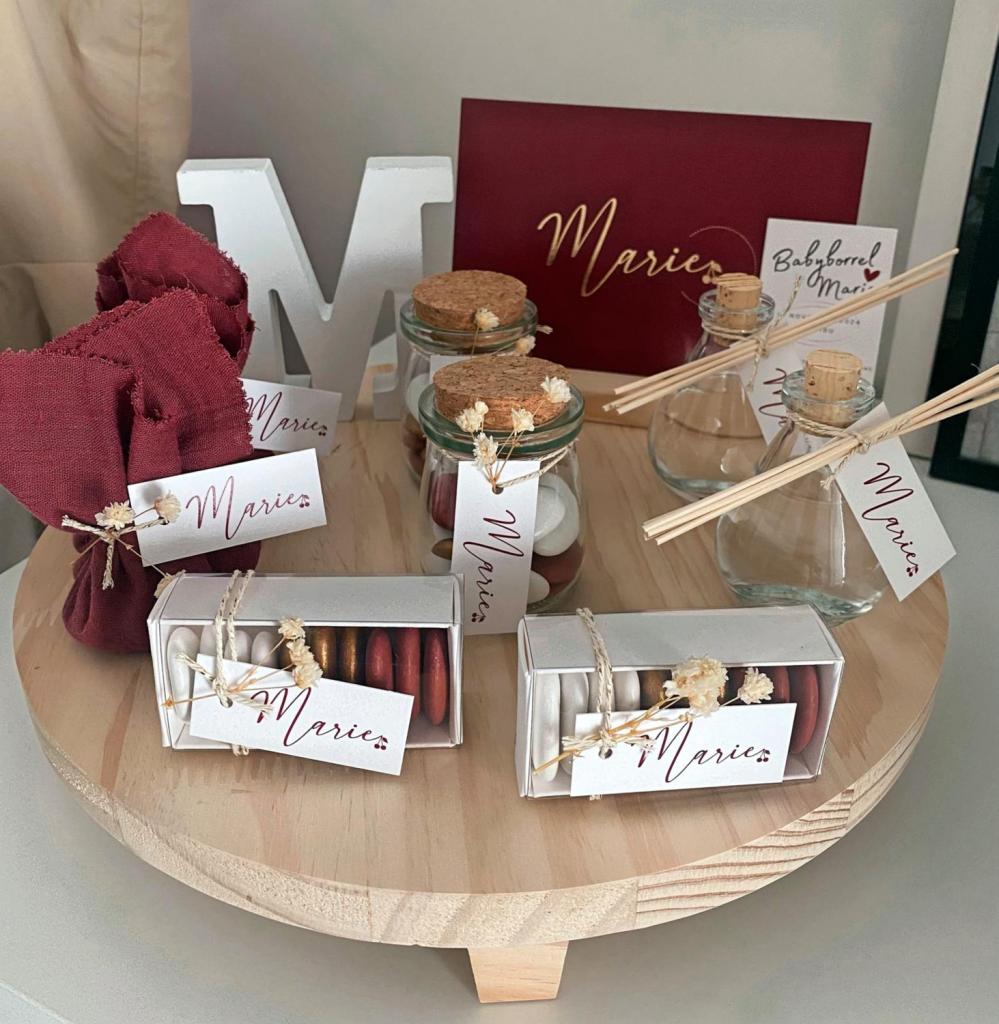 « Le faire-part a été réalisé par une cousine de mon ami. Nous avons puisé notre inspiration sur Pinterest. Je me suis moi-même occupée des dragées, car j’aime être créative. »