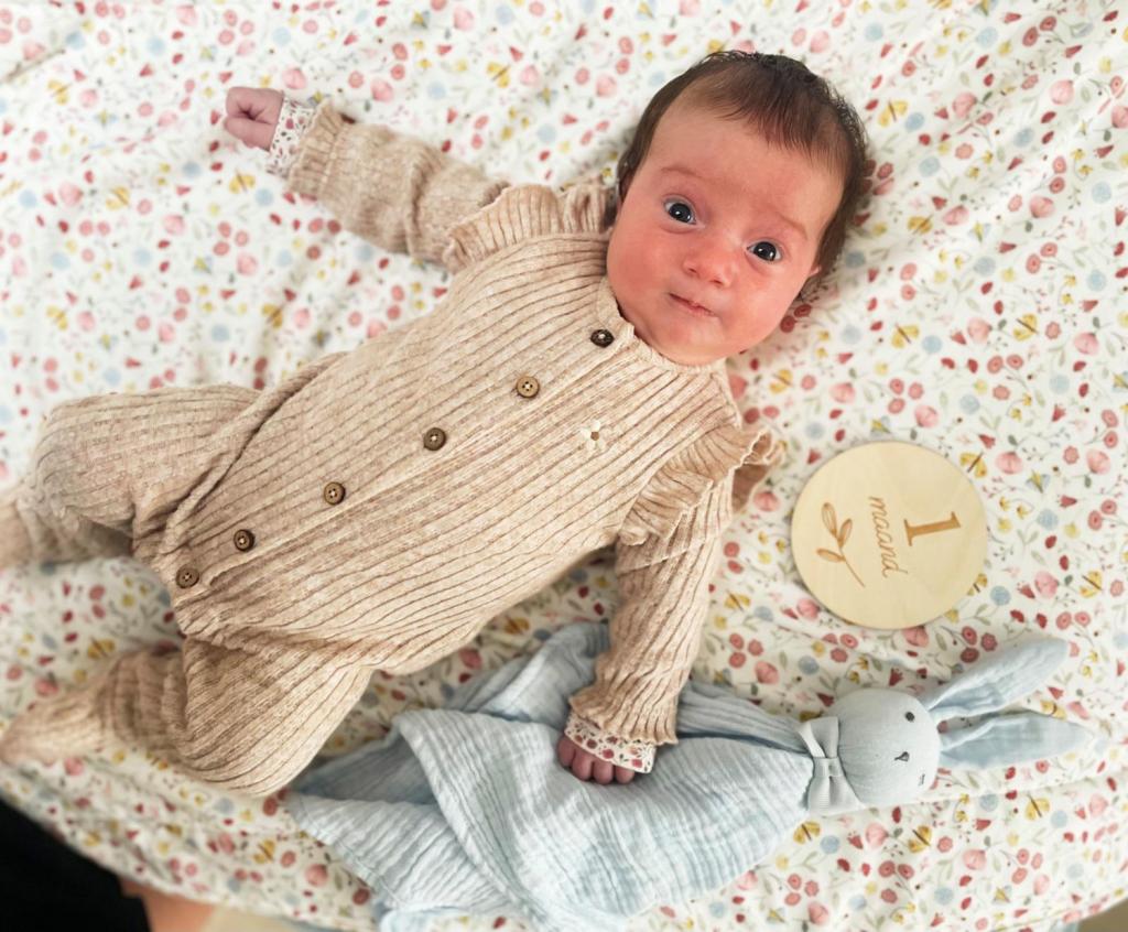 « Sur cette photo, Alba a 1 mois. J’essaie de prendre une photo chaque mois pour garder un souvenir pour plus tard. »