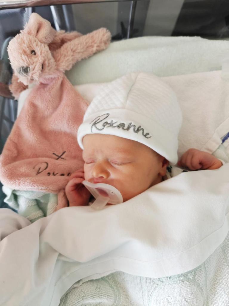 « C’est avec cette photo que nous avons annoncé la naissance de Roxanne sur les réseaux sociaux. Elle a été prise le deuxième jour, lorsqu’elle a enfin pu dormir dans ma chambre. »