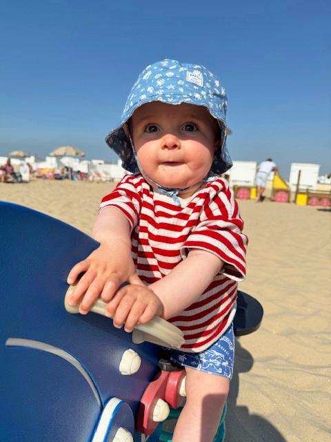 « Les grands-parents louent une cabine de plage sur la côte. Nous y passons beaucoup de temps pendant les vacances d’été. Aimé adore cet endroit. »