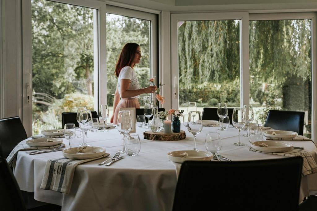 Notre fête a eu lieu à Hof ten Broeck, à Puurs-Sint-Amands, un ancien restaurant qui avait fermé ses portes. Nous avons été frapper nous-mêmes chez les propriétaires pour leur demander si nous pouvions y organiser notre mariage. Résultat: nous avons payé 450 € pour 2 jours, mobilier et charges compris. Parfois, il faut oser.
