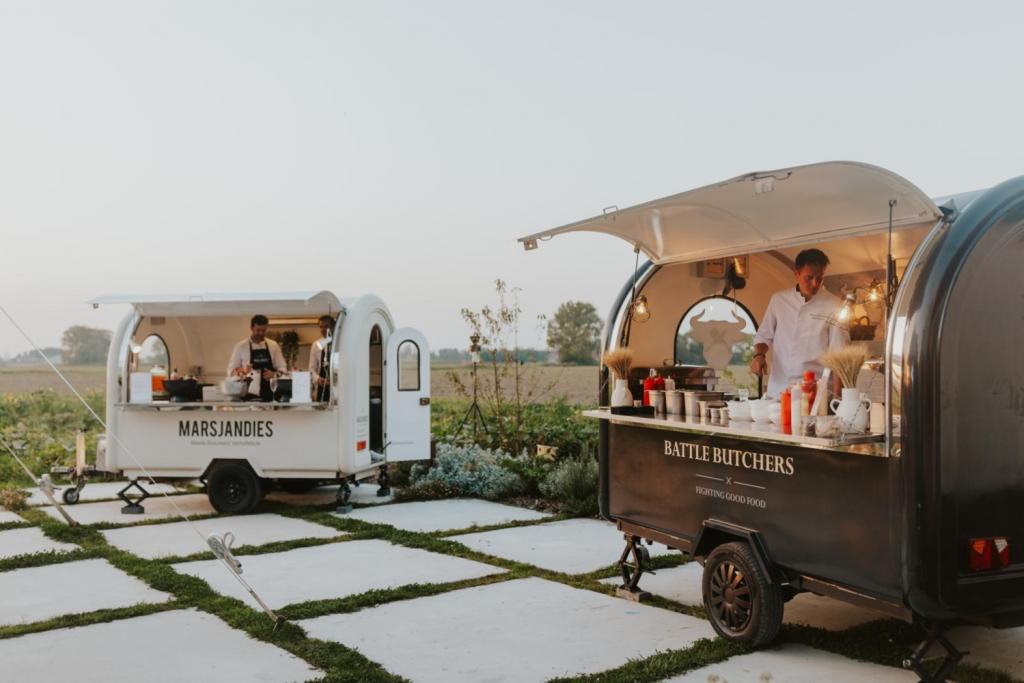 En optant pour un food truck et un bar mobile, nous avons évité le côté rigide qui accompagne souvent un dîner assis. Chacun était libre de se tenir debout ou de s’asseoir où il le souhaitait.