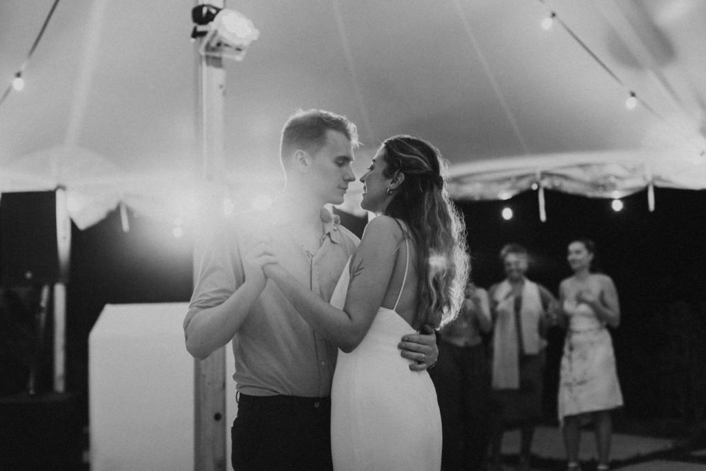 Avec toute cette agitation, nous avions oublié de répéter notre première danse, sur la chanson Can’t Take My Eyes Off You de Frankie Valli, nous étions donc nerveux le moment venu. Finalement, tout s’est très bien passé et la danse a semblé très spontanée.