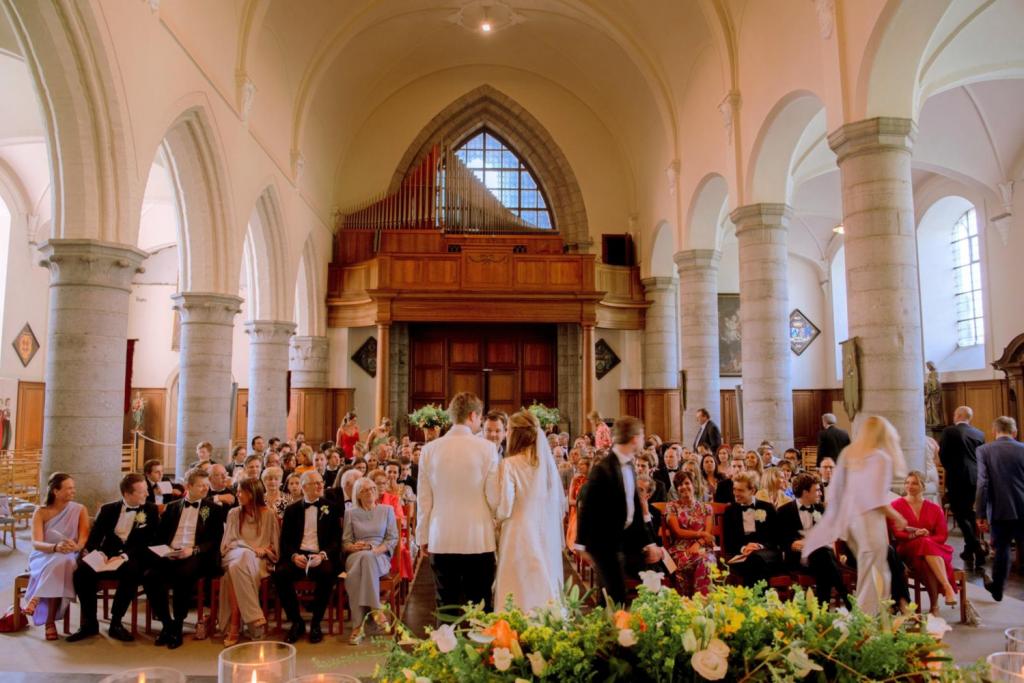 Le samedi après-midi, nous nous sommes mariés dans une église idyllique à Oostkerke (Damme). Ensuite, nous avons organisé notre réception au domaine Cornilly. La fête du soir a également eu lieu au même endroit.