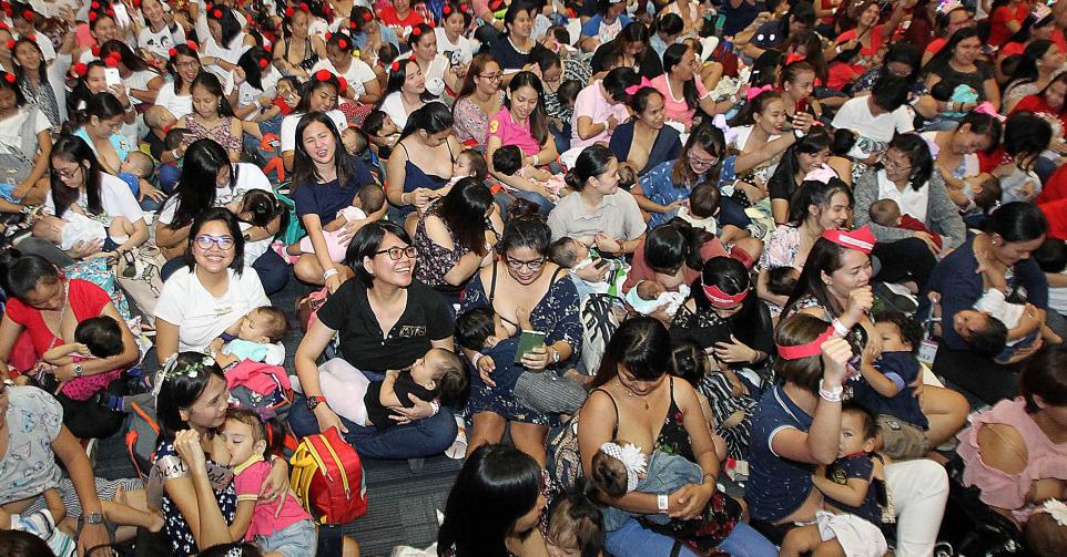 Choisir l’allaitement pour empêcher la mortalité infantile. Le gouvernent des Philippines mène une action de prévention chaque année, en invitant les femmes à se rassembler pour allaiter.