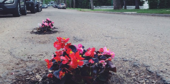 Société Société Planter des fleurs dans le bitume, une jolie façon de dénoncer le mauvais état des routes