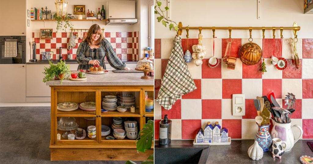 Victoire: ‘De keuken wilden we meteen aanpakken. We kozen keramische tegels in twee kleuren bij Impermo. Mijn papa betegelde de keukenwand en hing overal in het appartement wandrekjes op. Het is intussen een “familietraditie” geworden dat hij bij iedereen thuis komt helpen (lacht).’