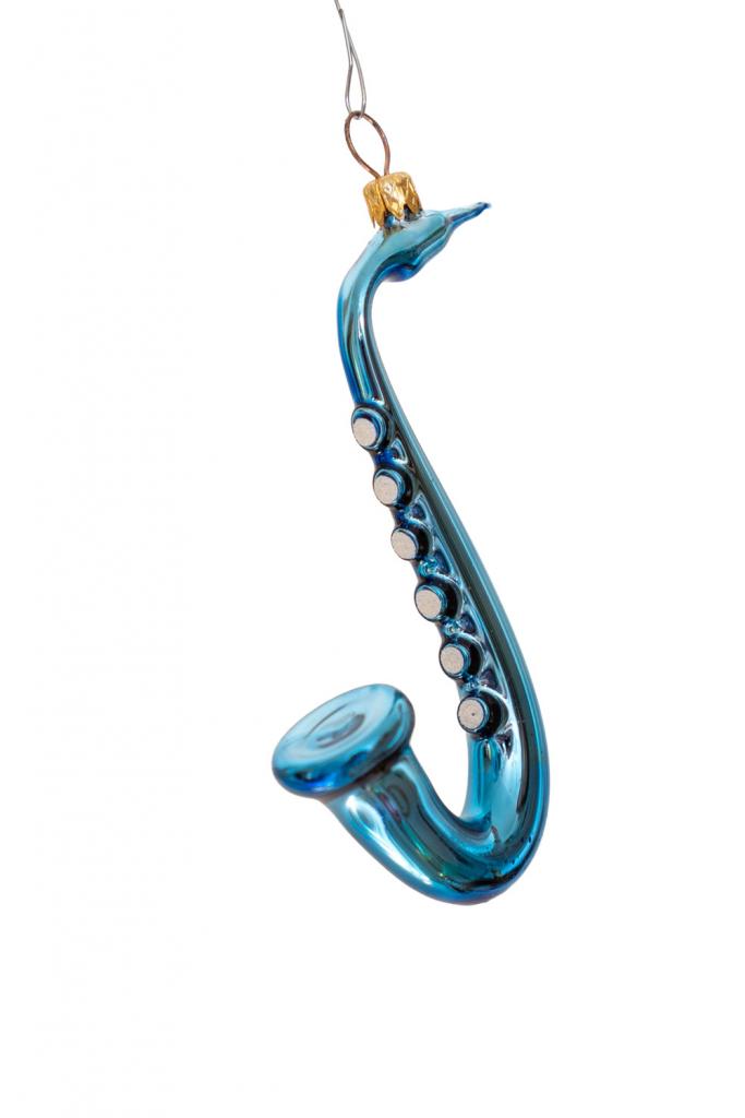 ‘In Dinant viel ons oog op een handgeblazen, blauwe saxofoon. Pas toen de verkoper de kerstbal al had ingepakt, zagen we het prijskaartje van 30 euro… en toen was er geen weg meer terug zonder schaamte.’