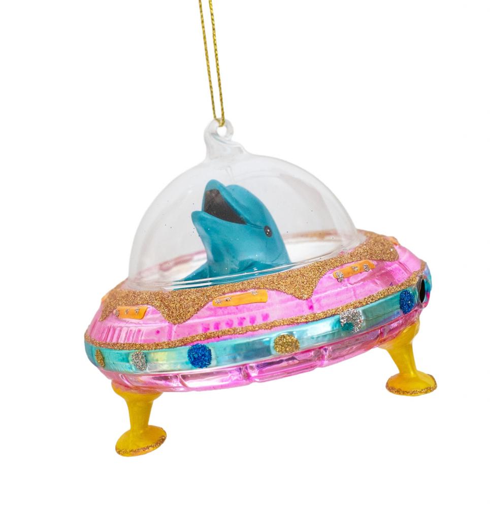 ‘Wat een dolfijn in een ufo te zoeken heeft, is nog steeds onduidelijk, maar hij is steevast de eerste kerstbal die we in onze boom hangen.’