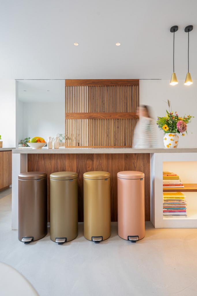 Zachte aardetinten zijn trending in interieurdesign. Trek die trend door in je vuilnisbakken: door voor meerdere kleuren in hetzelfde warme palet te gaan, creëer je meer diepte en maak je van je sorteerstraat een échte blikvanger in je interieur. Een pedaalemmer is kidsproof, makkelijk te openen en houdt vieze geurtjes tegen.
