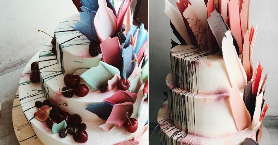 Als je binnenkort gaat trouwen en je de taart van je dromen nog niet gevonden hebt, lees dan zeker verder. De nieuwste trend op vlak van bruidstaarten is de brushstrokes cake, een uitmuntend gebakje dat versierd wordt met kleurrijke stukjes chocolade die doen denken aan penseelstreken. Het geheel ziet er niet alleen mooi, maar ook nog eens heerlijk arty farty uit! Vooral Kalabasa, een hip koffiezaakje in Moskou, maakte er zijn statement piece van, maar wij zijn er zeker van dat de trend ook in België snel opgepikt zal worden.