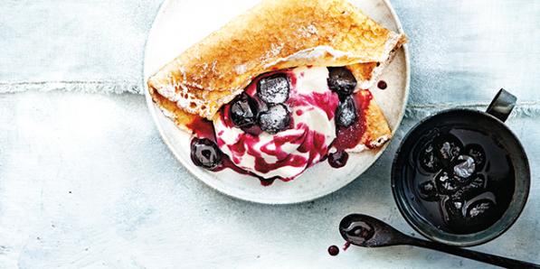 RECEPT: vanillecrêpes met kersen in butterscotch-siroop