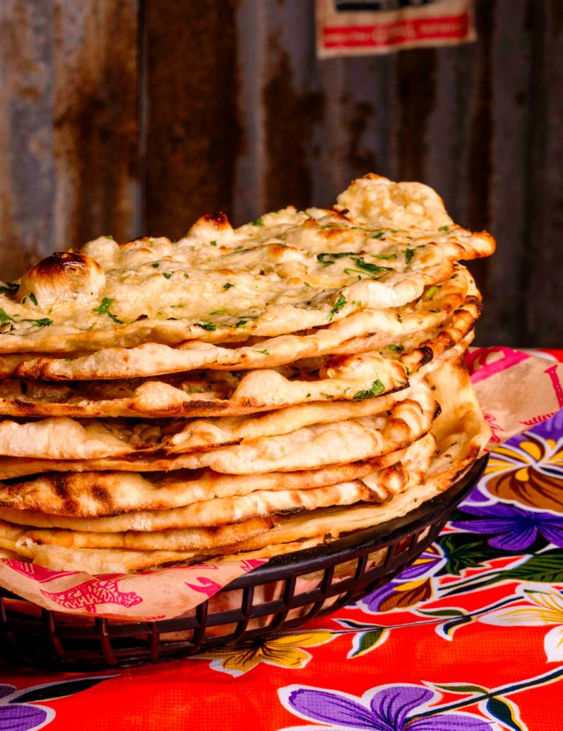 Tip: voor een knoflookvariant druk je voor het bakken wat fijngehakte knoflook en gehakte koriander in één kant van het deeg. Bak eerst met de knoflookkant naar beneden. Werk af met knoflookboter voor meer pit.