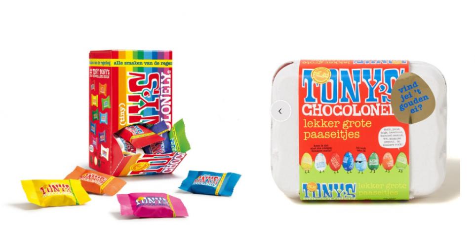 Nu we toch met onze online bestelling bezig zijn, hebben we meteen nog iets gespot wat we willen toevoegen aan ons winkelmandje. Bij De Bijenkorf hebben ze momenteel ook de paaseitjes van Tony’s Chocolonely in hun assortiment opgenomen. Met zeer veel geluk ook bij ons te vinden, maar wie deze paaseieren zeker een keertje wil proeven, kan ze ook online bestellen. Hier krijg je acht verschillende smaken waaronder puur, noga, hazelnoot en witte chocolade.