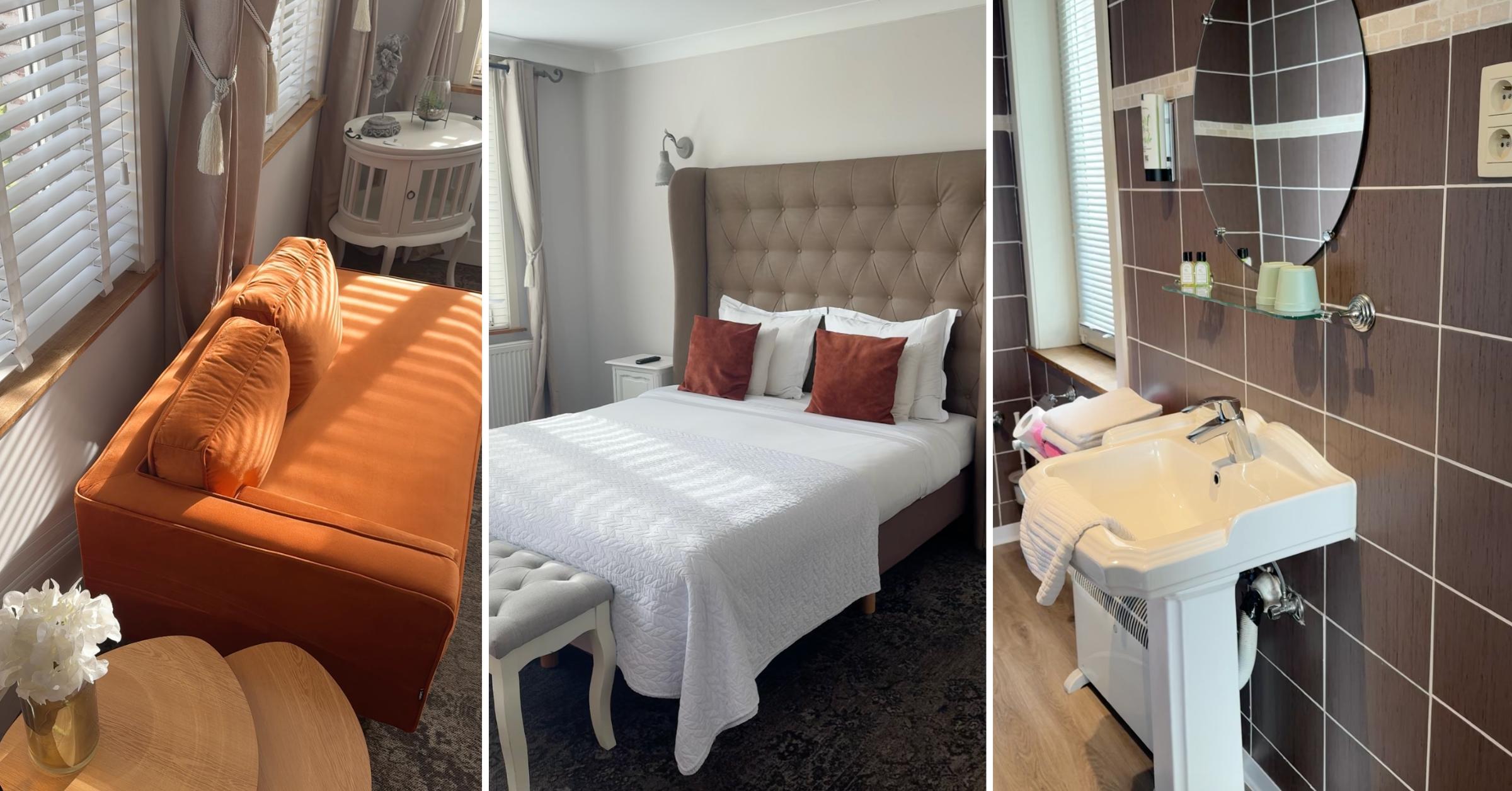 Toen we onze kamer binnenwandelden, voelde ik me écht even als een personage uit ‘Bridgerton’ die mocht overnachten in het fancy buitenverblijf van haar rijke tante. De houten vloer kraakte (unpopular opinion: het gezelligste geluid ter wereld), de kamer was heerlijk warm en de meubels zou je zo kunnen copy-pasten in een kasteel.