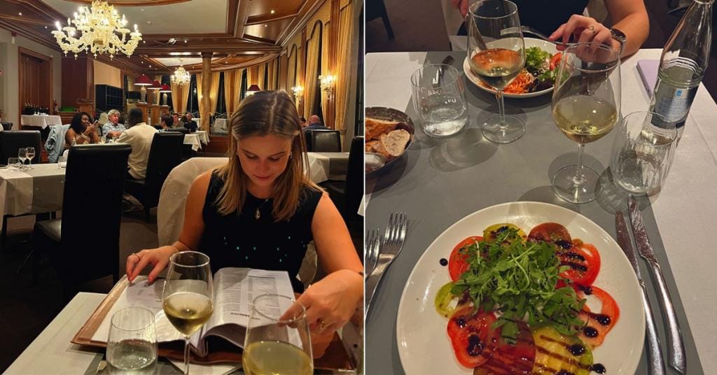 We schoven onze voetjes onder tafel in restaurant Le Chloé, waar een heerlijk driegangenmenu op ons stond te wachten. Een absolute topper met voor ieder wat wils! Bij het dessert werd het lastig om te kiezen. We zaten al zo vol dat we stiekem aan het meegenieten waren van het bord van onze buren, waar een bol chocolade werd overgoten met warme chocolade.