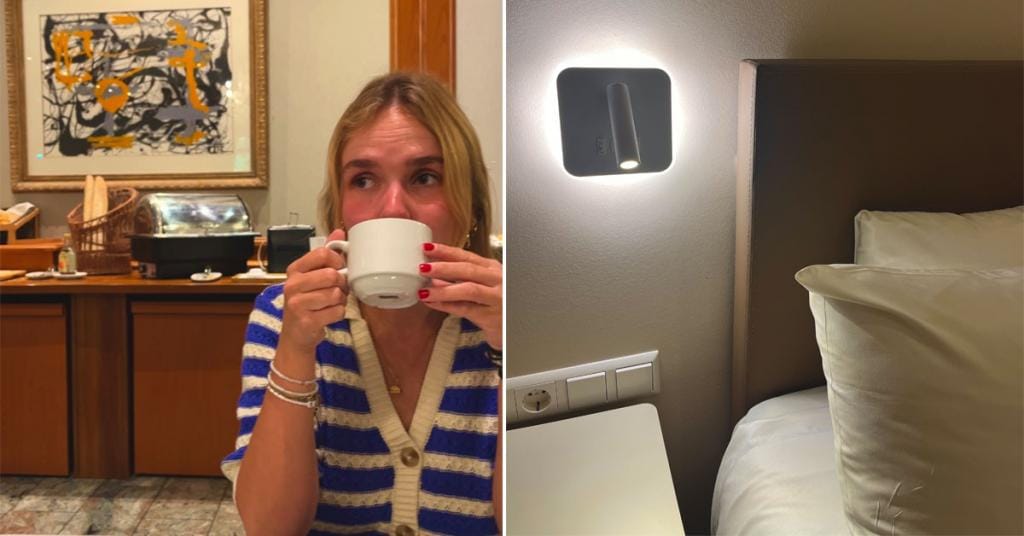 Vanaf het moment dat we aankwamen, voelden we ons meteen heel welkom. Ook al kwamen we binnen via de ingang van de parkeergarage in plaats van de hoofdingang op het plein, werden we superhartelijk ontvangen aan de receptie, waarna we kort werden rondgeleid door het hotel.