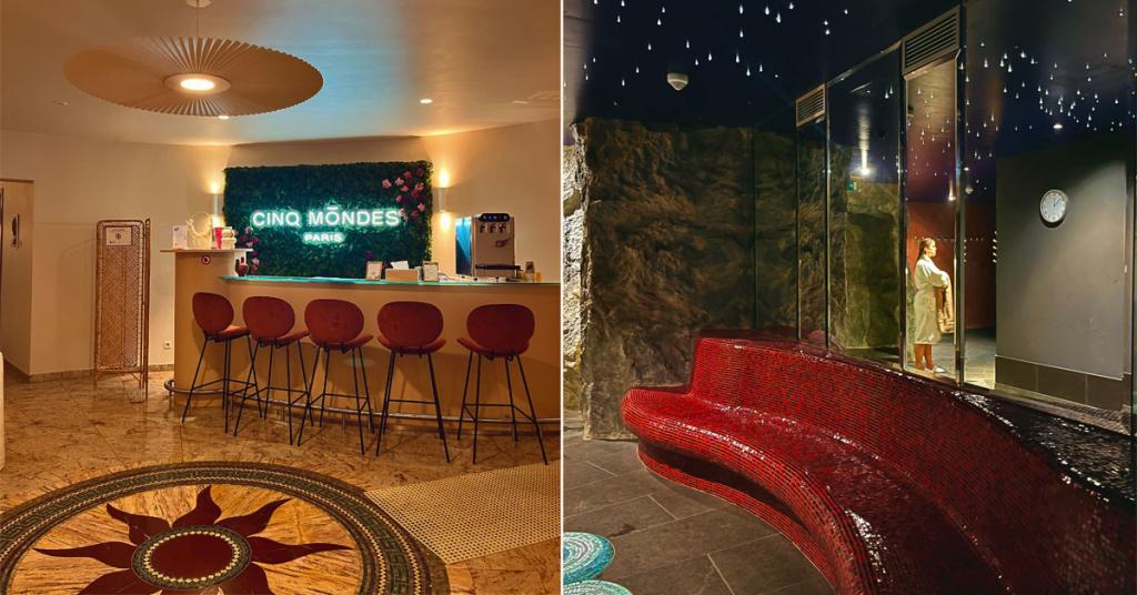 Als je de Spa Cinq Mondes binnenkomt, denk je meteen: wauw! Het interieur straalt warmte uit en mede door de hartelijke ontvangst, voel je je er meteen welkom in deze heerlijke wellnessomgeving. Er is een aparte lounge waar je je even kan leggen om tot rust te komen of een dutje kan doen.