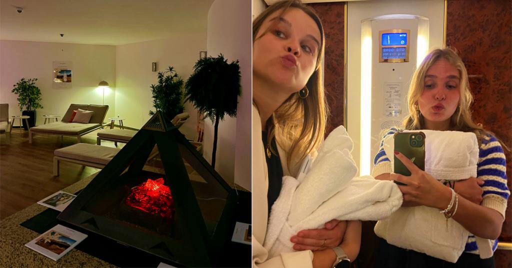 Daarnaast is er een groot verwarmd binnenzwembad, een jacuzzi om heerlijk in te dobberen, verschillende sauna’s, een stoomcabine,… Keuze genoeg dus om helemaal te ontspannen – en dat deden we, in onze zalig zachte en gigantische badjas.