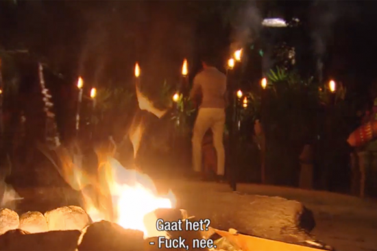 19. Wat vermoedelijk volgde, maar wat we niet zagen: een ‘Temptation Island’-medewerker die het zakje met de ring uit het kampvuur vist om het juweel vervolgens perfect te positioneren voor een close-up.