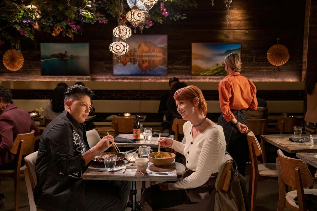 ‘We hebben Miranda uit haar comfortzone – advocaat, getrouwd, New Yorker en zelfs de dominante persoon in de relatie – gehaald. Ze datet nu met een bekend persoon dat niet stilzit, en dat heeft Miranda nooit eerder meegemaakt. Californië maakt daar deel vanuit, want het is een zeer relaxte plek met gezond eten en ecologie, en dat zijn niet echt Miranda’s interesses.’