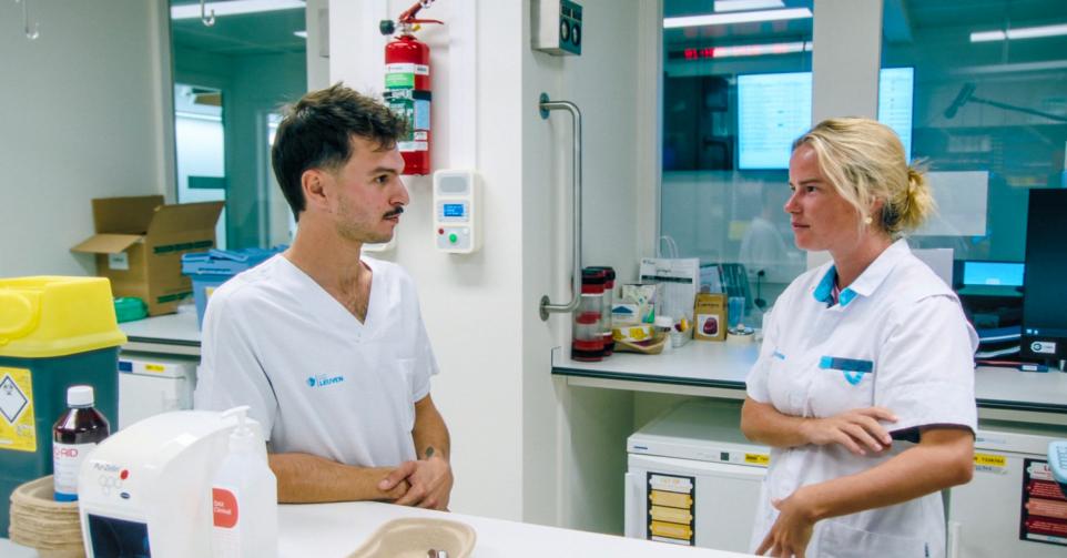 William Boeva verkent de verborgen wereld achter de schermen van het ziekenhuis. Hij dacht het wat rustig aan te kunnen doen, maar hij trekt grote ogen. ‘Hoe ingewikkeld is dat? Wat moet die Carine daar allemaal doen en aan wat voor een tempo’, lacht hij.