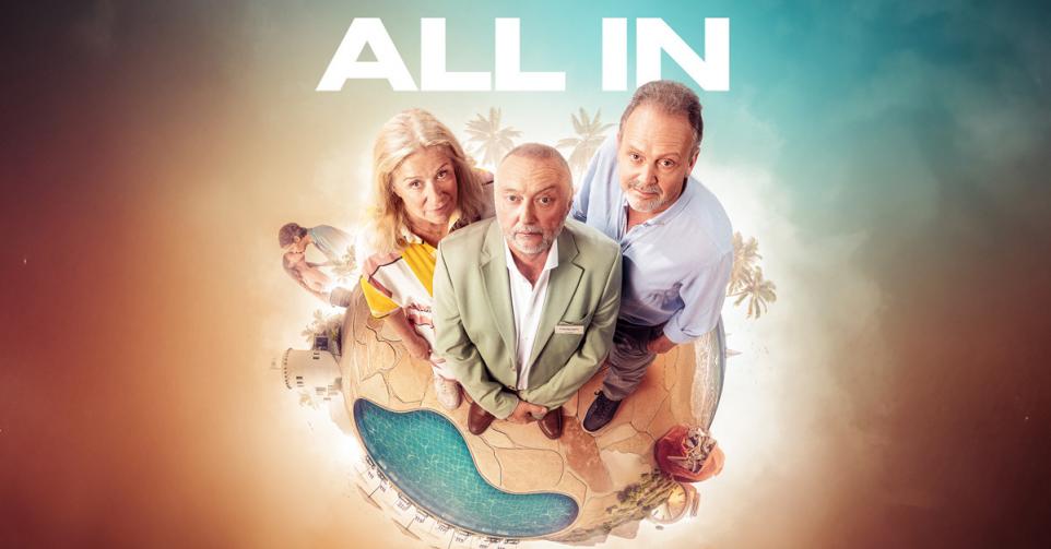 Een zonnige vakantie. Twee gezinnen. Eén grote chaos. ‘All in’ is een familiekomedie van Luk Wyns over een Belgisch en een Nederlands gezin die elkaar treffen in het luxehotel Montíboli aan de Costa Blanca. Wat begint als een rustige week onder de Spaanse zon, ontspoort al snel in een komische chaos van hotelherrie, liefdesperikelen en hilarische confrontaties.