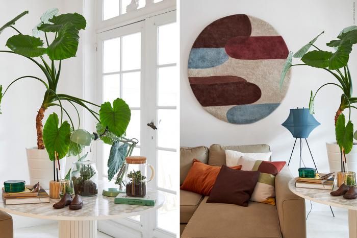 2. Neem nu dat vloerkleed dat al jaren in de woonkamer ligt (zo lang al dat je het zelfs niet meer ziet liggen). Wat als je het eens op een originelere manier in de kijker zet? Hoe? Geef het kleurrijke accenten en hang het aan de muur. Een topidee waarmee je je interieur een originele draai geeft zonder iets te hoeven kopen en met wat je al in huis hebt.