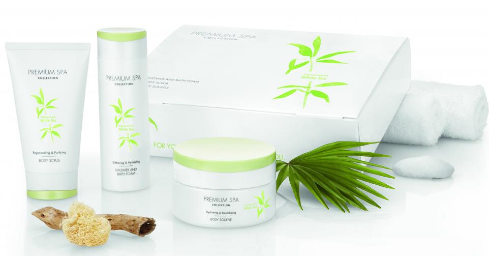 De koffertjes hebben een waarde van € 72 en bevatten drie producten met de subtiele geur van witte thee: een verzachtende en hydraterende bad- en doucheschuim, een vernieuwende en zuiverende body scrub en een hydraterende en verkwikkende body soufflé.