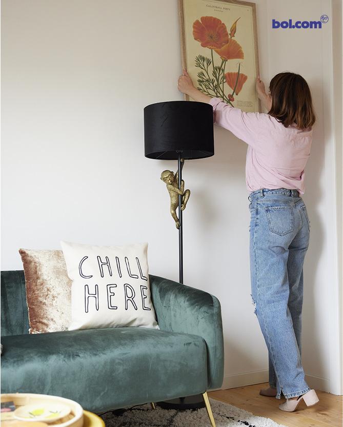 Zorg dat je leefruimte uitstraalt wie je bent door persoonlijke elementen toe te voegen. Kies voor een zetel in je lievelingskleur en hang mooi artwork, een spiegel of foto’s aan de muur. Een vleugje humor werkt ook altijd! Wat dacht je van kussens met een leuke opdruk of een aapje dat in je lamp klimt en je elke avond gezelschap houdt bij het televisiekijken?
