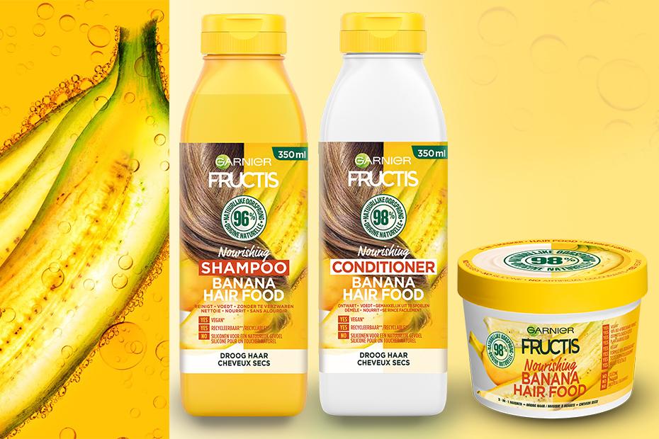 Je haar raakt moeilijk gevoed en breekt snel? Als jij je haar hierin herkent, dan is het assortiment Banana Hair Food perfect voor je! Fructis heeft deze ultravoedende verzorging speciaal ontwikkeld om je haar intens te voeden. Deze formules met een zachte textuur zijn verrijkt met banaan en dringen snel in het haar om het weer prachtig te laten glanzen.