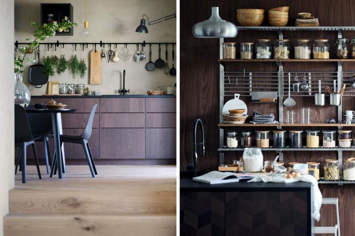 De keuken: organiseer alles naargelang hun nut én denk aan een evenwichtige mix van materialen (hout, metaal en glas).