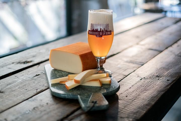 ‘Orval-kaas combineren met Orval-bier is oké’, zegt Davy. Hij gaat echter voor Bruxellensis, een bier van Brasserie de la Senne. ‘De kaas van Orval verzacht de bitterheid van het bier, waardoor de andere smaken in het bier ook meer naar voren komen.’