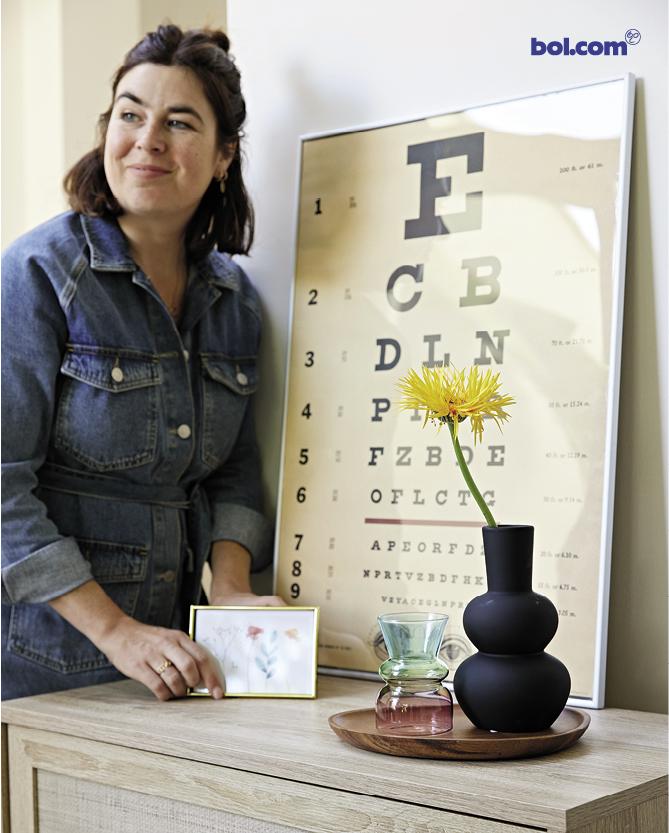 Joni: “Kijk maar naar dit gekleurde vaasje of poster die net uit het kabinet van de oogarts lijkt te komen. Die verrassende keuzes maken je huis net heel eigen en karaktervol.”